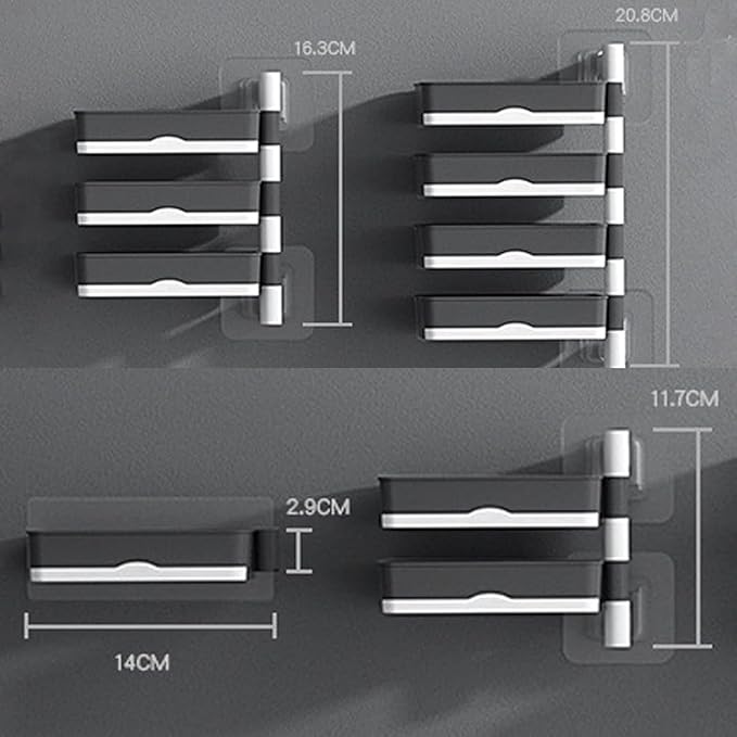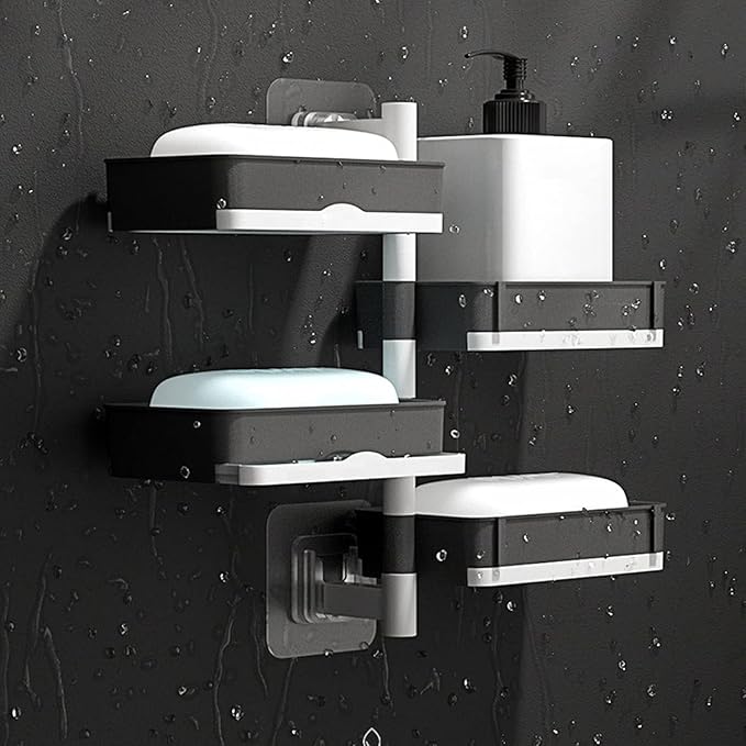 Foldable Soap Dish Holder - Modern Bathroom & Kitchen Organizer Upgrade your bathroom organization with the 4 Layer Foldable Soap Dish Holder (Model SZ-1941). This innovative storage solution is designed to maximize vertical space while keeping your vanity or shower area clutter-free. With its unique multi-tier rotating design, you can store up to four items simultaneously in a sleek, organized fashion. Key Benefits: Multi-Tier Efficiency: Why settle for one soap dish when you can have four? Perfect for families or users who use different types of soap and skin care products. Flexible Orientation: The 180-degree rotating arms allow you to customize the layout. Arrange the tiers in a "staircase" fashion for easy access or fold them flat to save space. Damage-Free Mounting: The powerful suction cup attachment means no tools, no screws, and no holes in your tiles. It provides a secure hold on smooth, non-porous surfaces. Clean & Dry: The open tray design allows for air circulation, helping your soap dry faster and last longer.